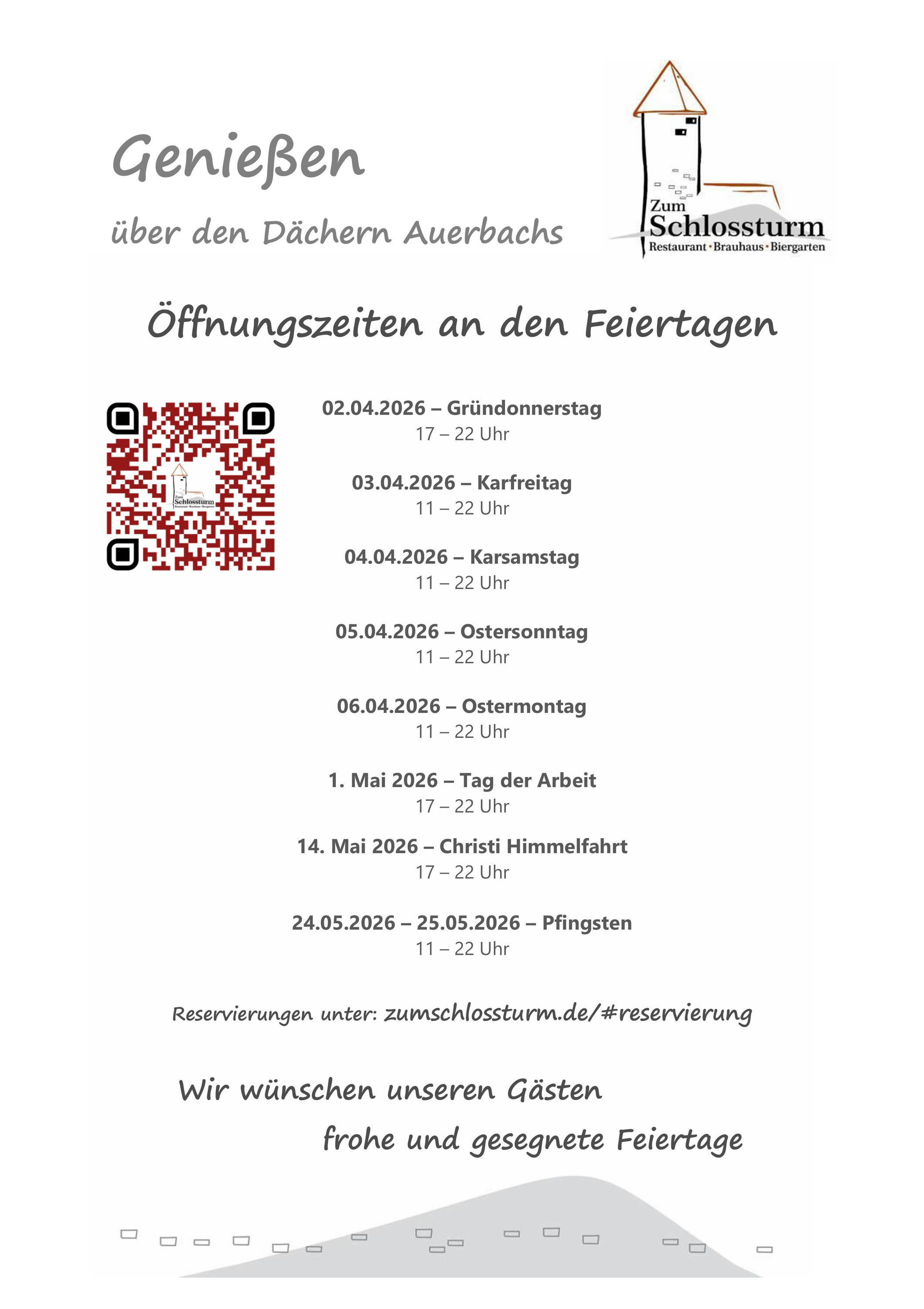 Für besondere Anlässe steht Ihnen unser Turmzimmer zur Verfügung - ideal für private Feiern oder Geschäftsbesprechungen mit Blick über Auerbach.